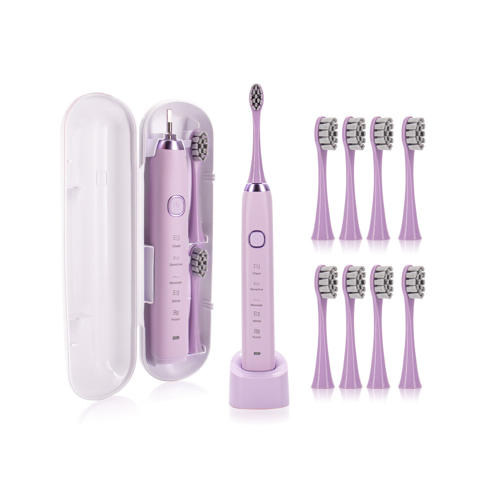 (Purple 8 heads) Electric Sonic toothbrush 8 brush heads Intelligent for ultrasonic teeth whitening