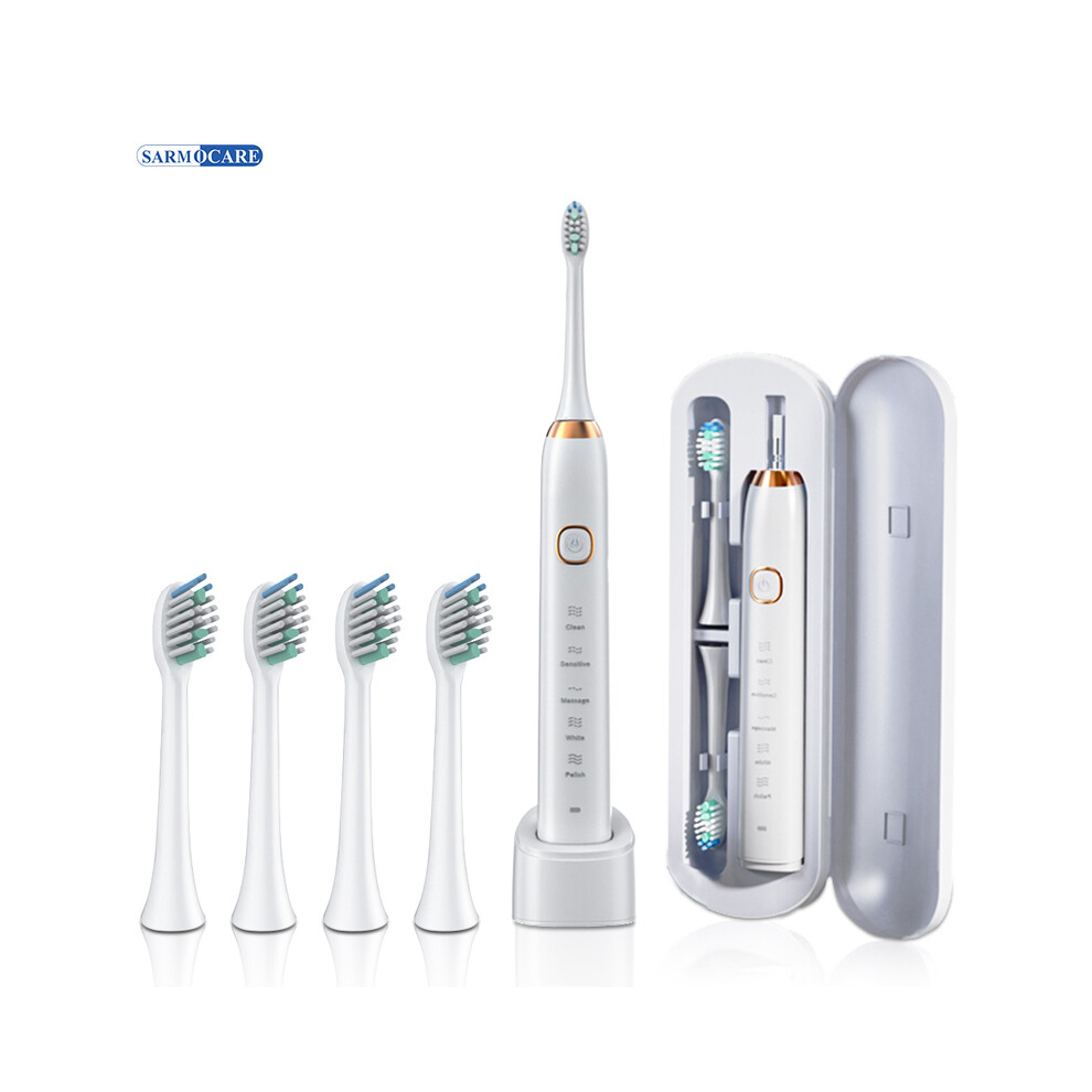 (White 4 heads) Electric Sonic toothbrush 8 brush heads Intelligent for ultrasonic teeth whitening