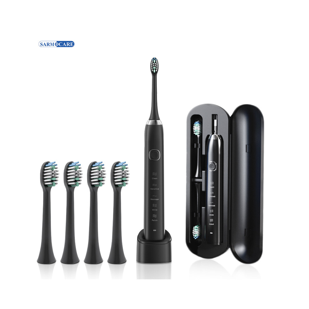 (Black 4 Heads) Electric Sonic Toothbrush 8 Brush Heads Smart Ultrasonic Teeth Whitening Rechargeable