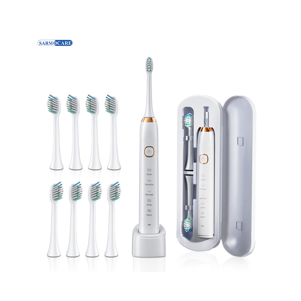 (White 8 heads) Electric Sonic toothbrush 8 brush heads Intelligent for ultrasonic teeth whitening