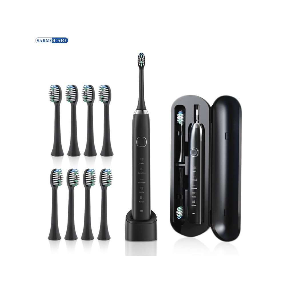 (Black 8 Heads) Electric Sonic Toothbrush 8 Brush Heads Smart Ultrasonic Teeth Whitening Rechargeable