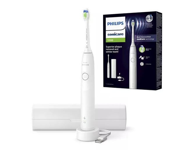 Philips Sonicare 5300 Electric Toothbrush HX7108/03 White + Case & 2 Brush Heads