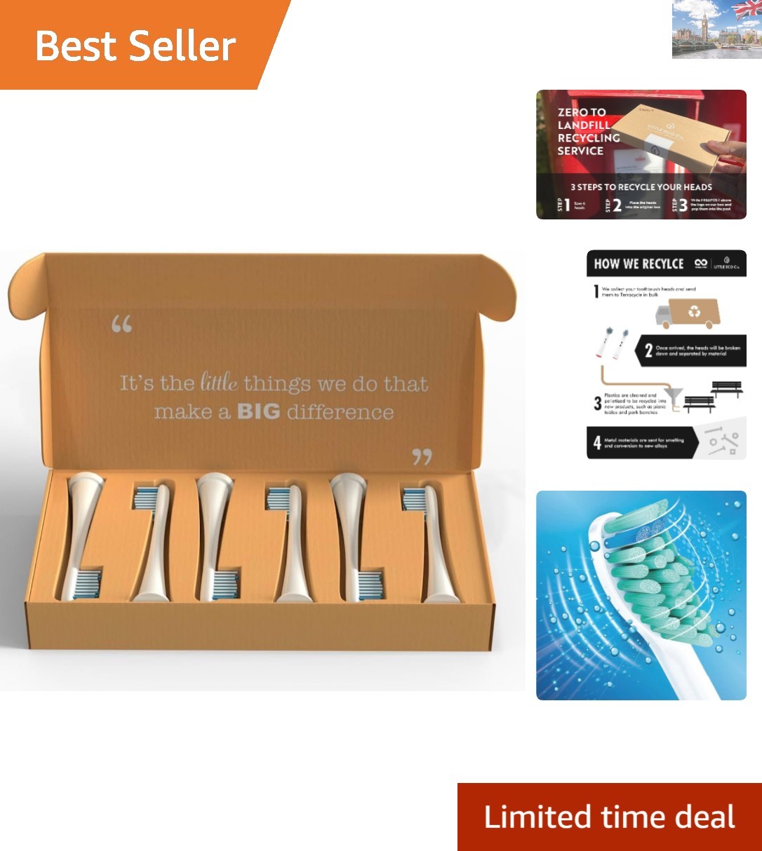 Recyclable Sonicare-Compatible Toothbrush Heads - Soft Dupont Bristles Pack of 6
