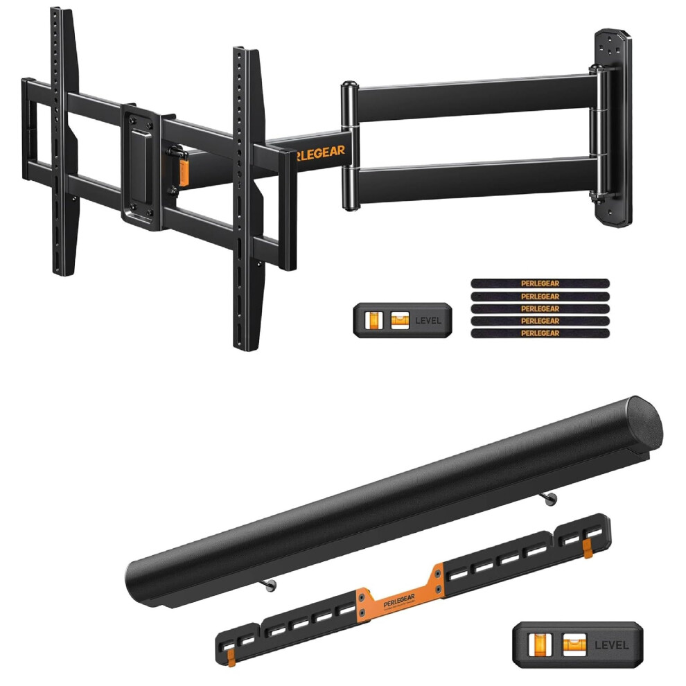 Corner TV Wall Mount with Long Arm Full Motion for 3275 Inch TVs, Soundbar Bracket for Sonos Arc