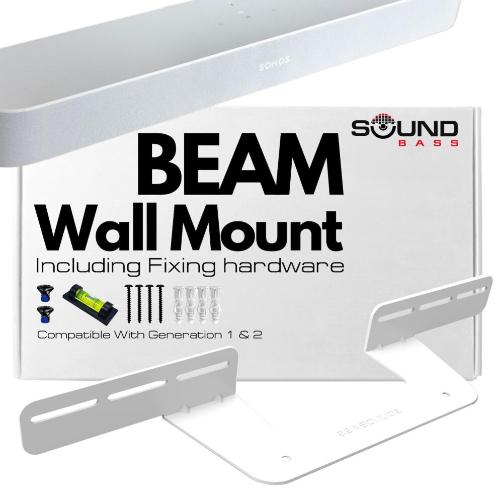 Soundbass Beam TV Mount Compatible with Generation 1 & 2 Sonos Beam Mounting Bracket for TV White Full Hardware Kit Included Beam Soundb