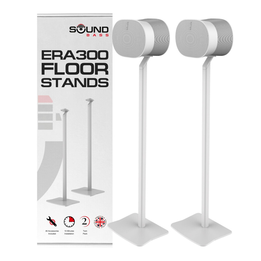 ERA300 Floor Stand, Premium Metal Design, Twin Pack (2pcs), White, Compatible with Sonos ERA 300 Speaker, Accessories Included,Cable Management, Desi