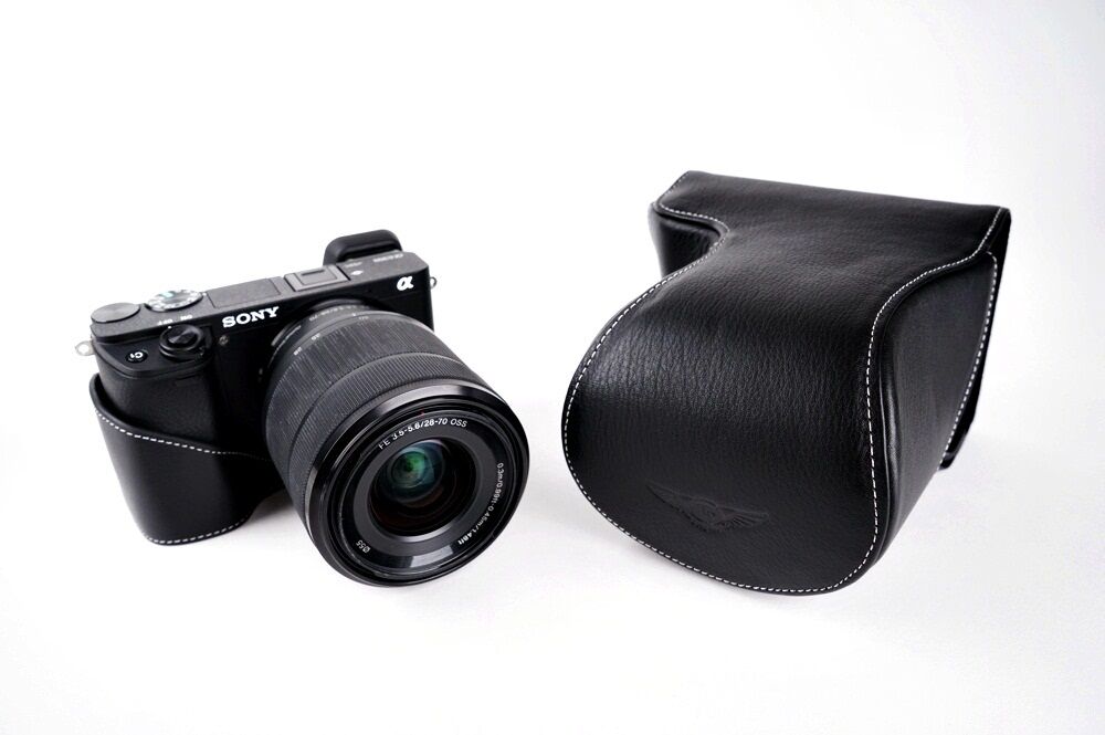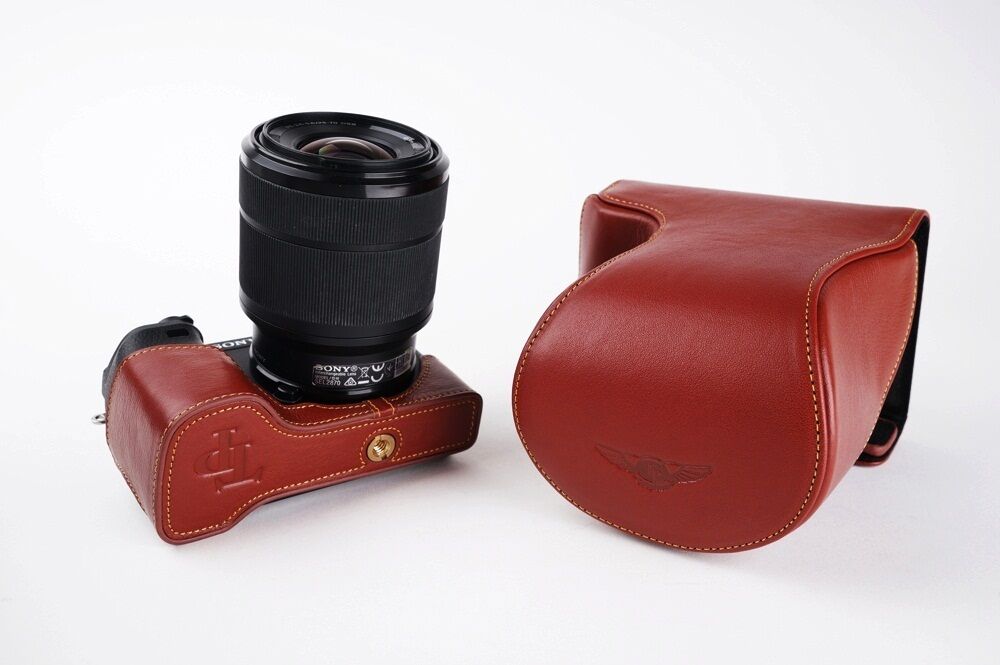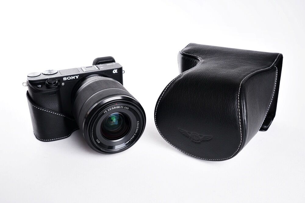 Genuine Real Leather Full Camera Case Bag Cover for Sony A6300 28-70mm Lens Open