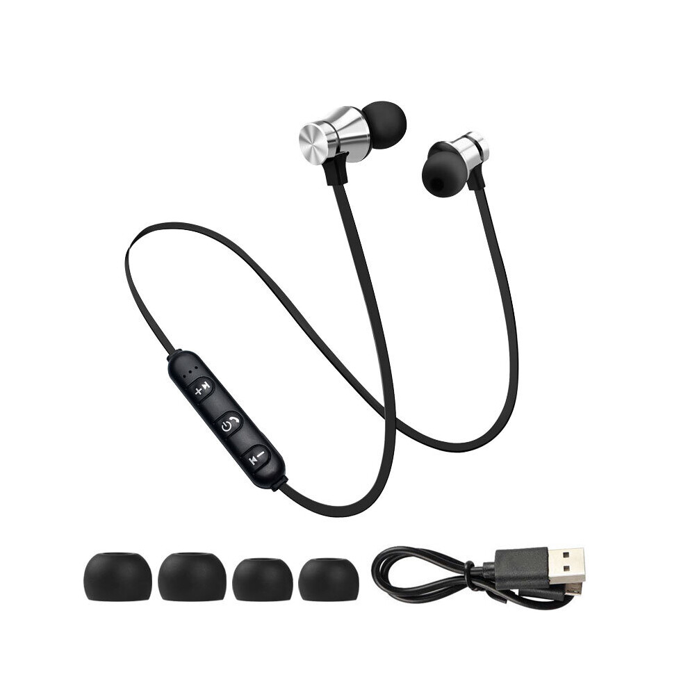 (a-Silver) Earphone Wireless Bluetooth Headset Magnetic Earbuds Waterproof Sport With Mic For iPhone Sony Xiaomi Meizu Gaming Headset
