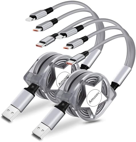 Amuvec Multi Retractable Charger Cable, [3A/1M/2 Pack] 3 in 1 Multiple Lead with 2*iP Micro USB Type C Cable Connector for Phone, Android Samsung Galaxy, Pixel, Huawei, Oppo, Sony, LG, Xiaomi, Moto