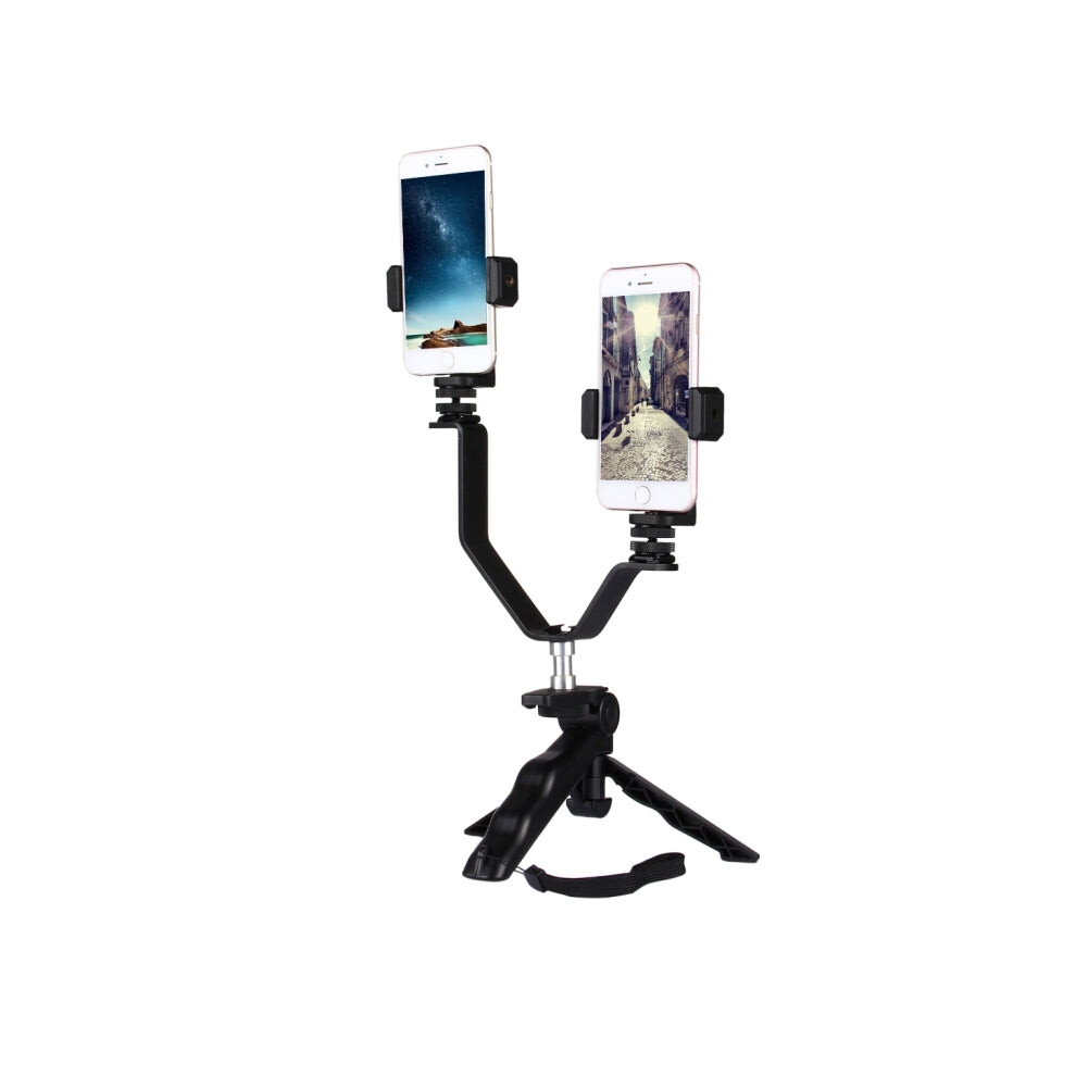 Smartphone Live Broadcast Tripod Holder Kit â Folding Grip with 2 Phone Clips, For iPhone, Galaxy, Huawei, Xiaomi, HTC, Sony, Google, and More