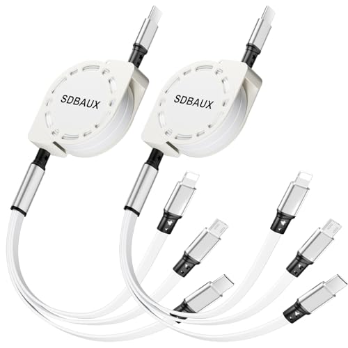SDBAUX USB C to Multi Retractable Charging Cable, [3A 1M 2 Pack] Type C to 4 in 1 Charger Cord with iP/Type C/Micro USB Ports, for iPhone 16/15 Series, Android Galaxy, Huawei, Xiaomi, LG, Sony, Moto