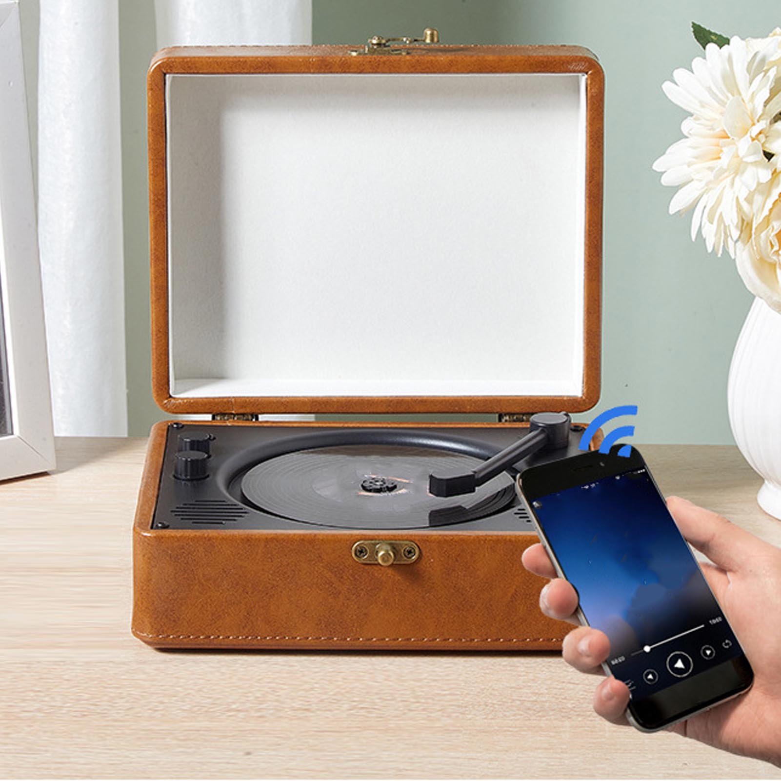 Yintiny Brown Leather CD player With Speakers For Home Decor