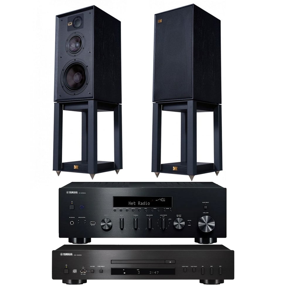Yamaha R-N600A Network Receiver & CD-S303 CD Player with Wharfedale Linton Heritage Standmount Speakers with Matching Stands - Black