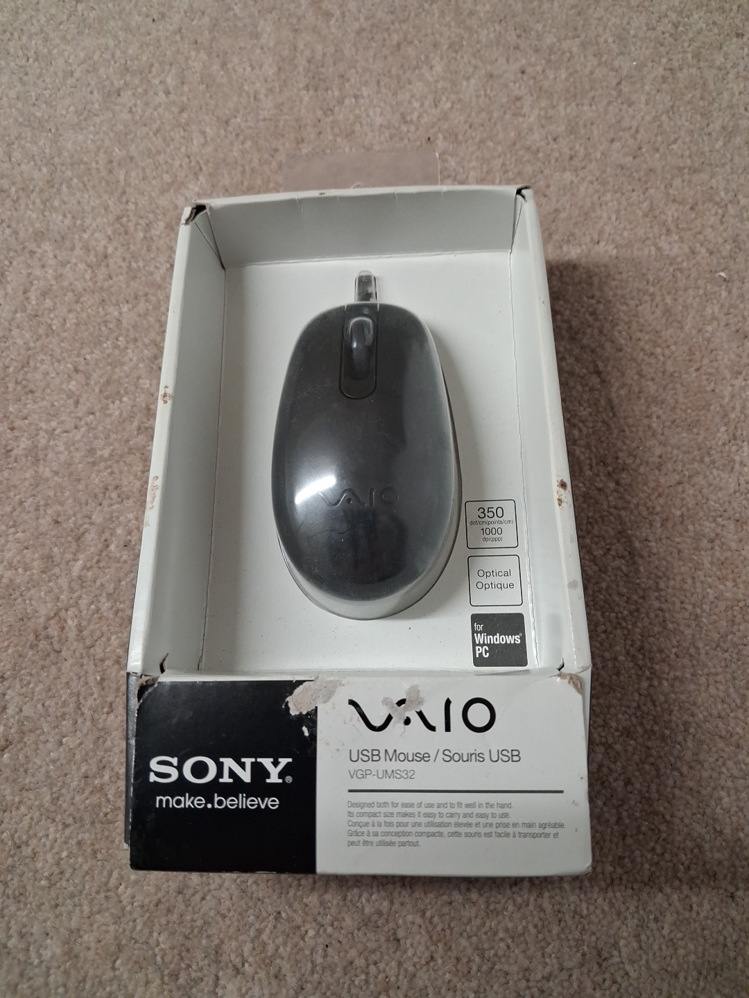Genuine Sony Vaio Official Computer USB Cable Mouse VGP-UMS32B , New Old Stock