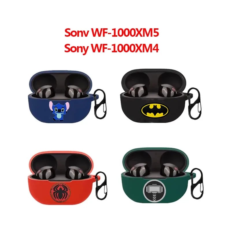 Cartoon Marvel Batman Cover For Sony WF-1000XM5 / WF-1000XM4 Silicone Wireless Earbuds Charging Box Protective Shell With Hook