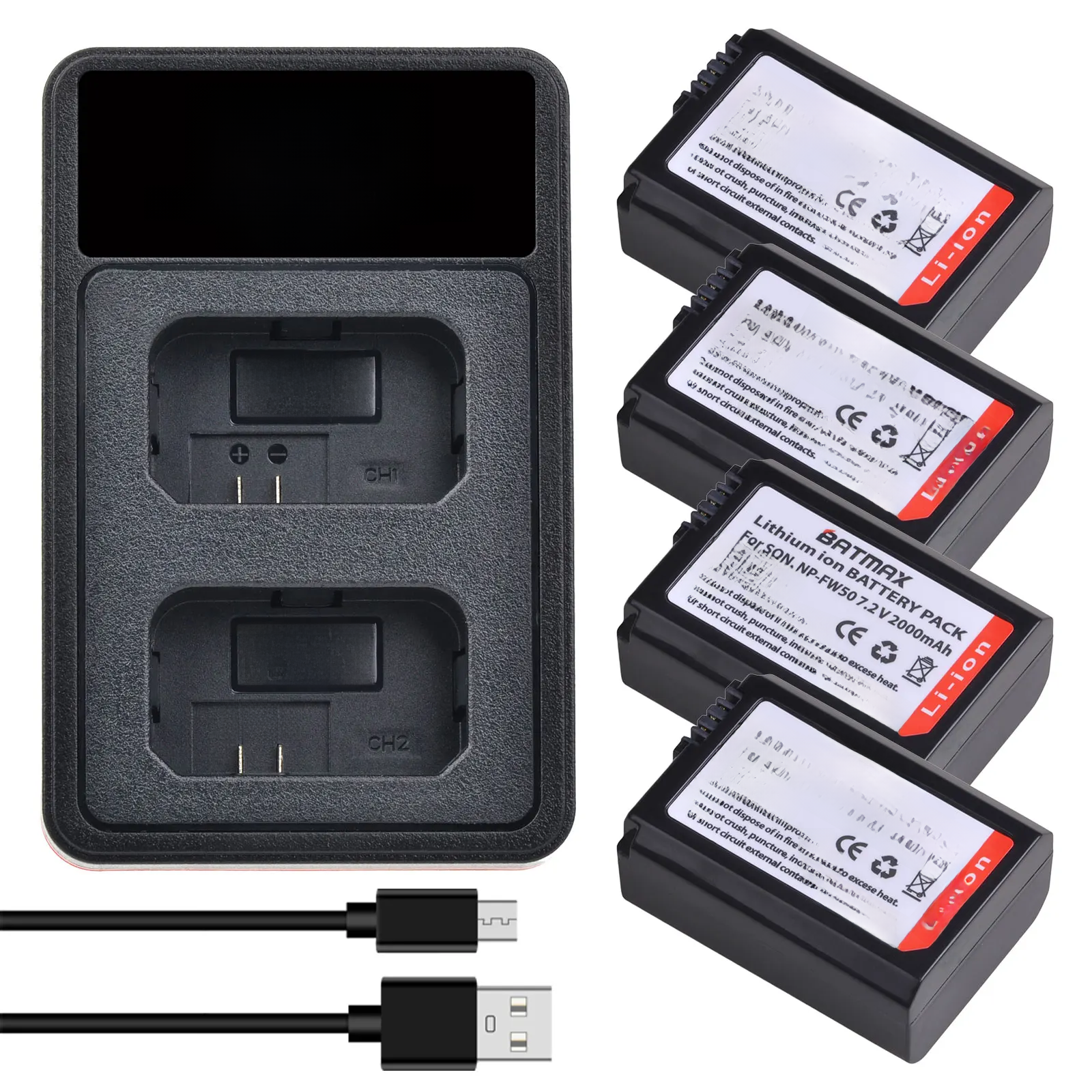 4X 2000mAh NP-FW50 NP FW50 Battery + LED USB Dual Charger for Sony A6000 A6400 A6300 A6500 A7 A7II A7RII A7SII A7S A7S2 A7R