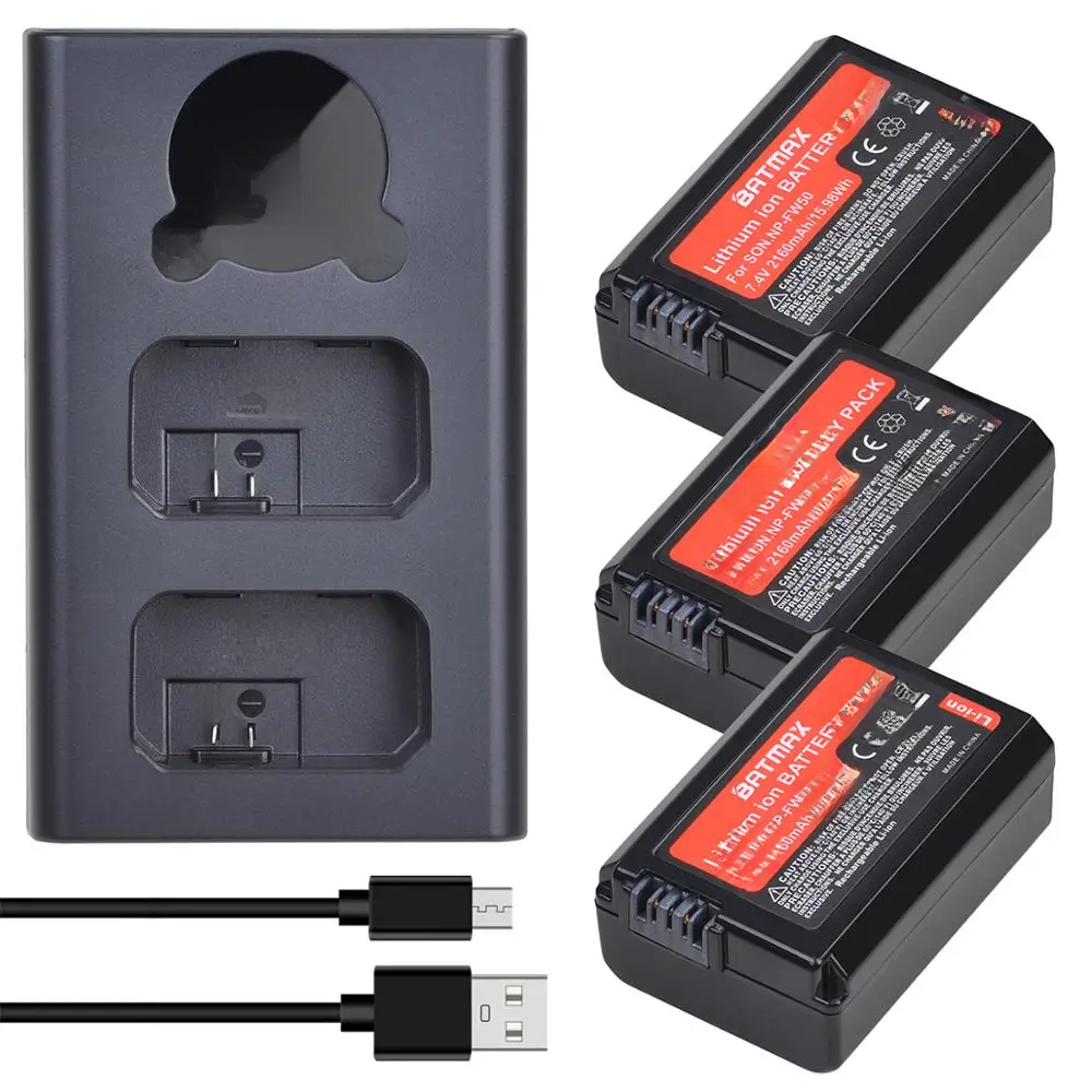 2000Mah NP-FW50 NP FW50 Camera Battery + LCD USB Dual Charger for Sony Alpha A65