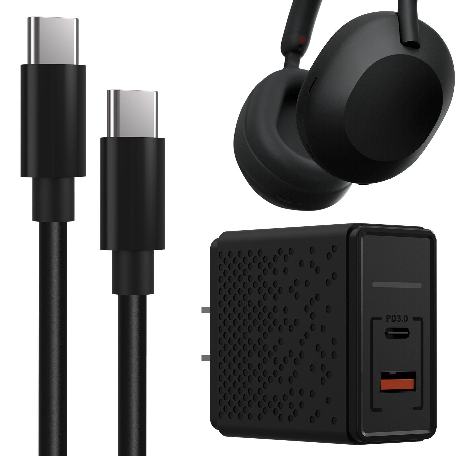Geekria Type-C Fast Charger Adapter & Cable for Sony WH-1000XM5 1000XM4 XB910N