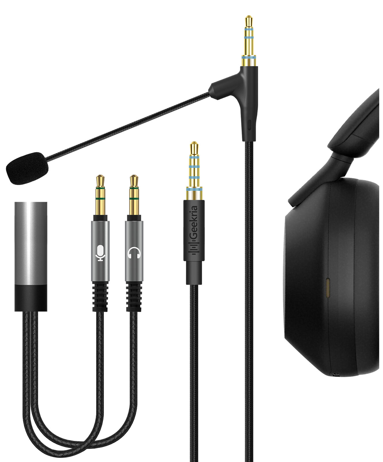 Geekria Boom Mic Headphones Cable for Sony WH-1000XM5 1000XM4 (5.6 ft)