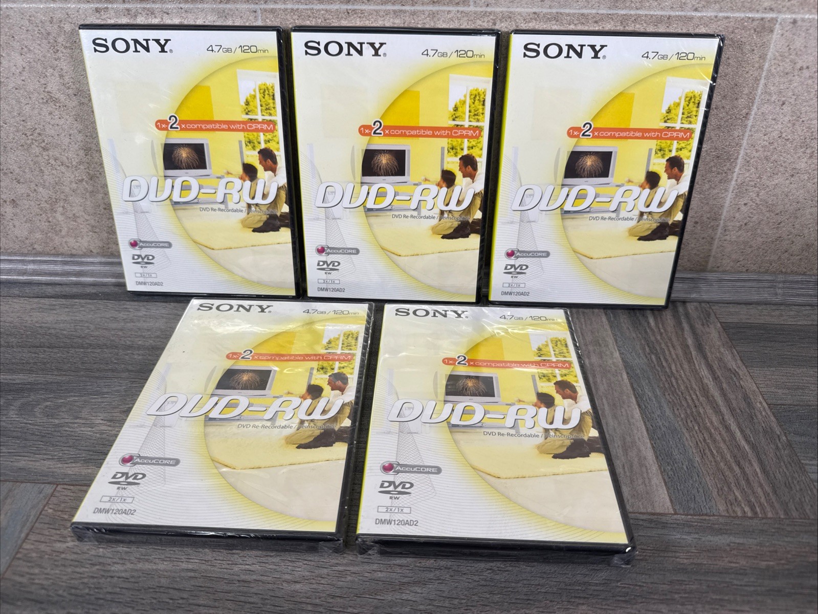 X5 SONY DVD-RW Re-Recordable Accucore 4.7GB/120min DMW120AD2 Sealed