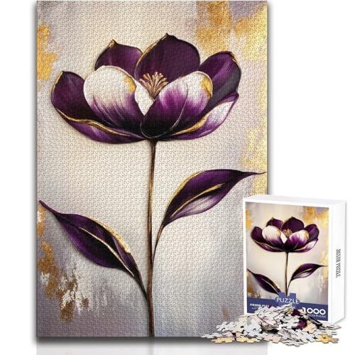 1000 Pieces Jigsaw Puzzles for Adults Elegant Purple ﹨u Gold Floral Art - Realistic Yet Abstract Painting for Soph Cozy And Calming Leisure Fun Seamless Fit High Precision Toy Size 38x52cm