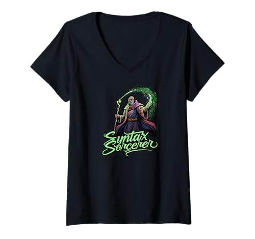 Womens Syntax Sorcerer Coding Wizard Funny Programmer V-Neck T-Shirt