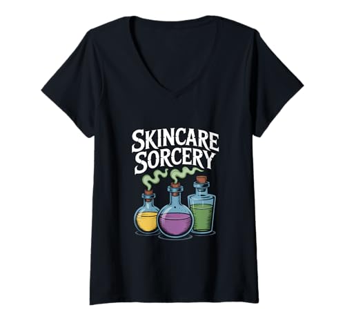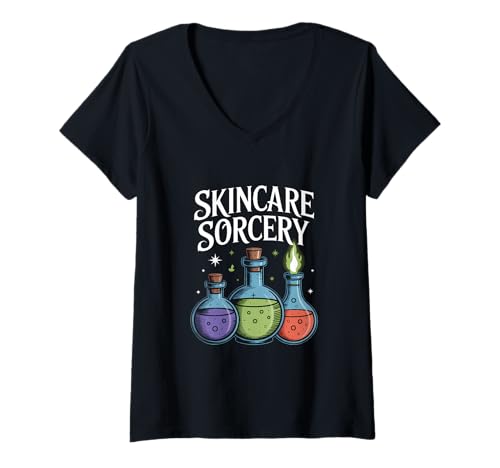 Womens Halloween Esthetician Skincare Sorcery Retro Potion Magic V-Neck T-Shirt