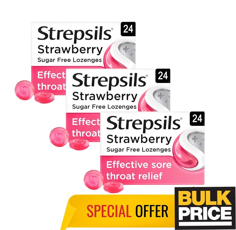 Strepsils Strawberry Sore Throat Relief Blocked Nose 3 x 24 Lozenges