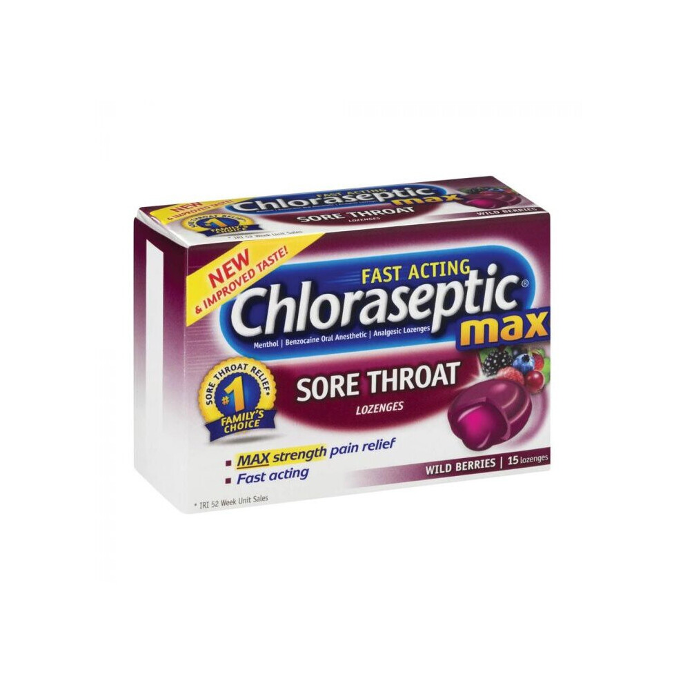 Chloraseptic Max Sore Throat Lozenges Wild Berries 15 each By Chloraseptic