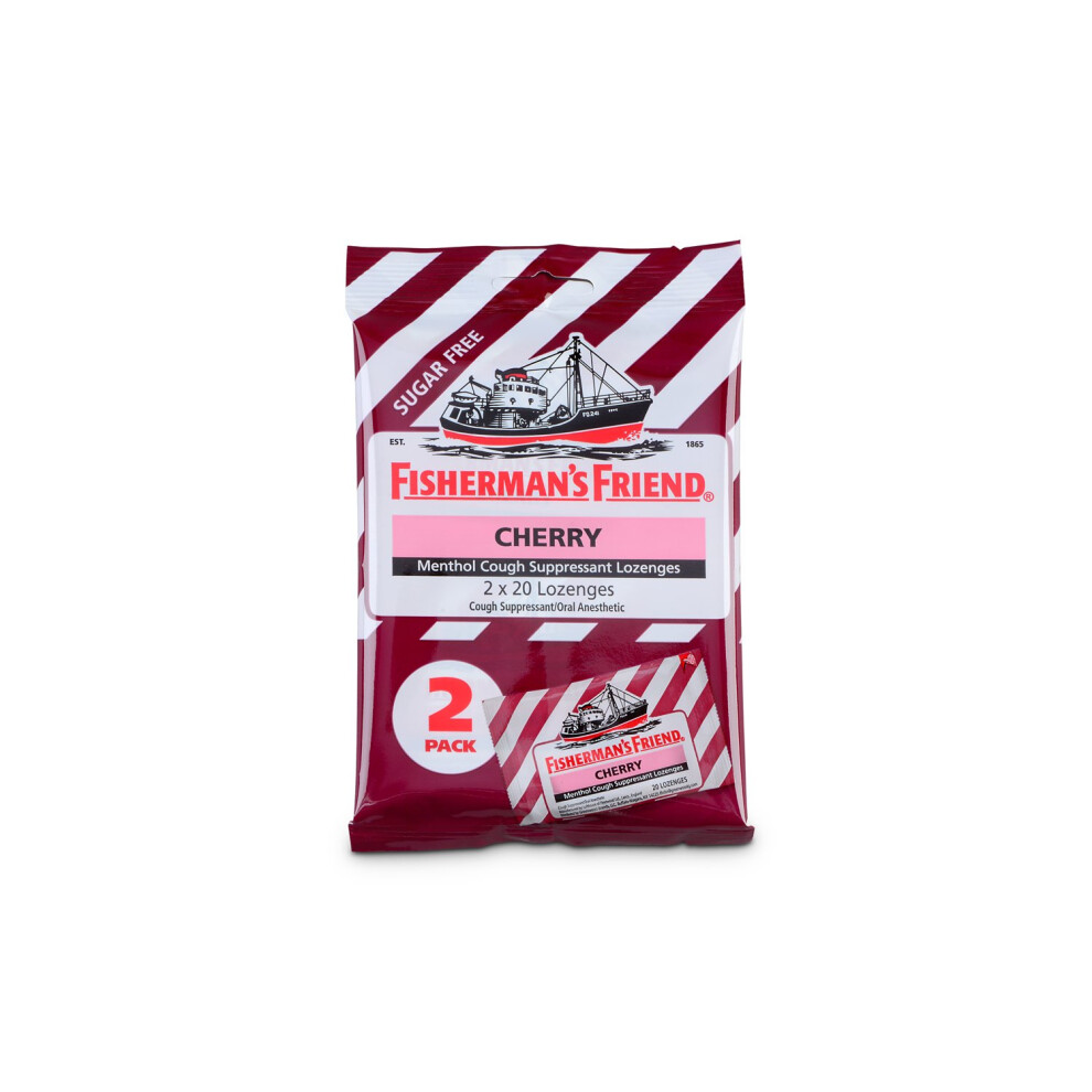 Cough Drops by Fisherman's Friend Cough Suppressant and Sore Throat Lozenges Cherry Sugar Free Menthol Flavor 40 Count