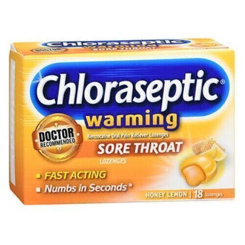Chloraseptic Warming Sore Throat Lozenges Honey Lemon 18 each By Med Tech Produc