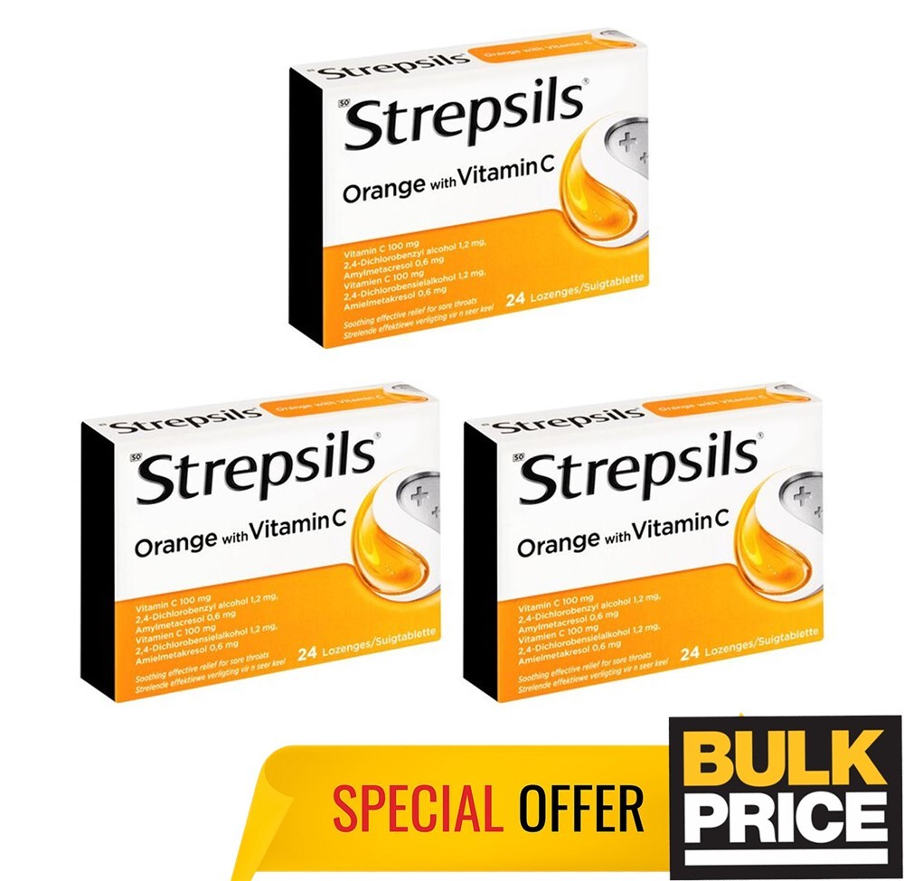 Strepsils Orange Vitamin C Sore Throat Relief & Comfort 3-Pack 24 Lozenges Each