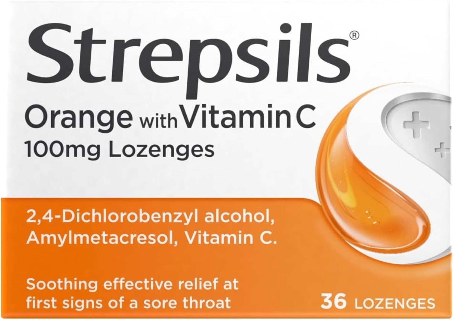 Strepsils Orange With Vitamin C Sore Throat Lozenges 36 Pack