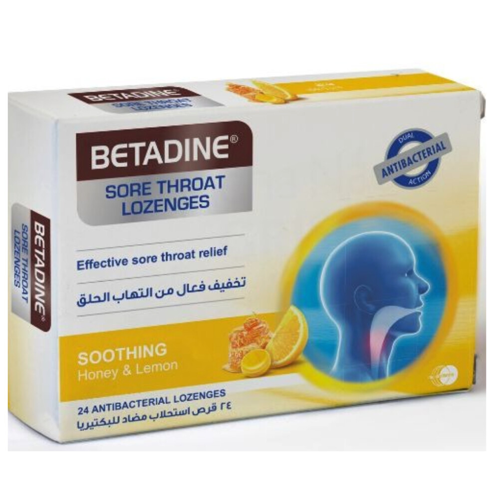 Betadine Sore Throat Honey & Lemon Lozenges 24s - Soothing Relief for Throat Irritation