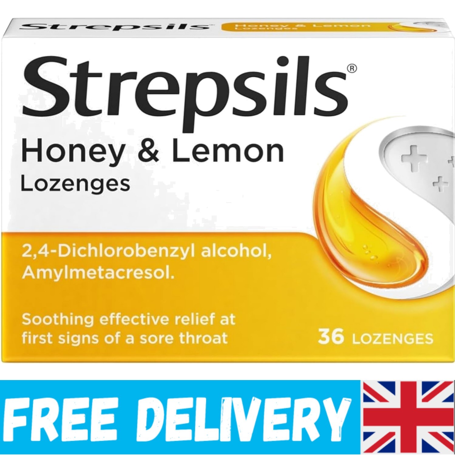 Strepsils Honey Lemon Lozenges 36 Count Fast Acting Sore Throat Relief Medicatio