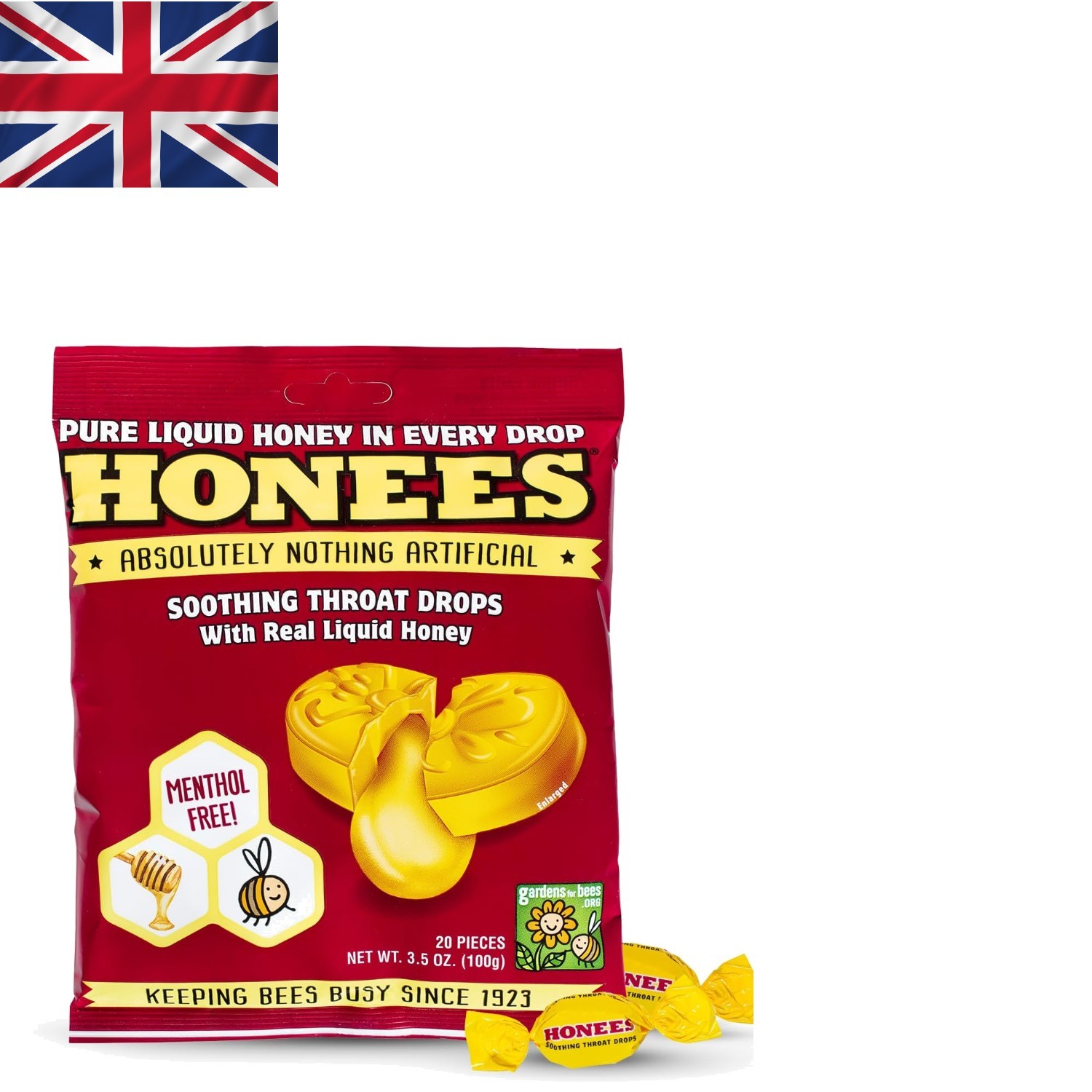 Honees Honey Filled Drops Variety Pack (Honey Honey Lemon Menthol and Ginger)-Natural Sore Throat Relief - Throat Lozenges Nothing Artificial