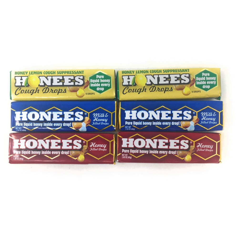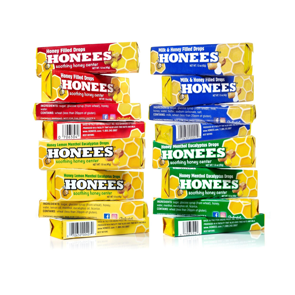 Honees Honey Filled Drops Variety Pack (Honey Milk & Honey and Honey Lemon)-Natural Sore Throat Relief - Throat Lozenges Nothing Artificial -