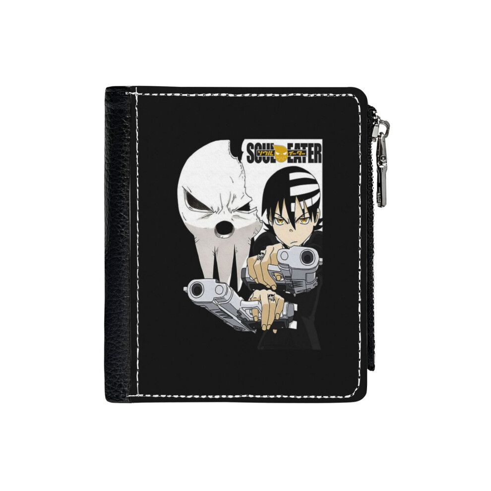 (Death The Kid Demon Twin Guns Soul Eater Gift Fan_5556) Men's Women PU Leather Wallets Compact Bifold with Zipper & Multiple Card Coins Slots Black S