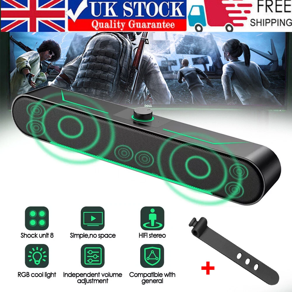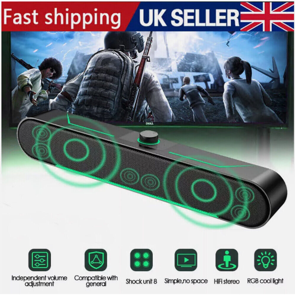 Wired PC LED USB Sound Bar Stereo Speakers TV Computer For PC Desktop Tablets UK