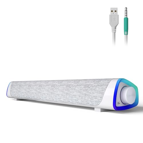 Jectse USB Computer Speakers, HiFi Sound Desktop Sound Bar, Gaming Mini Sound Bar External Speaker with Volume Knob, 3.5mm Wired PC Speakers for PC Laptop Tablet for PS5
