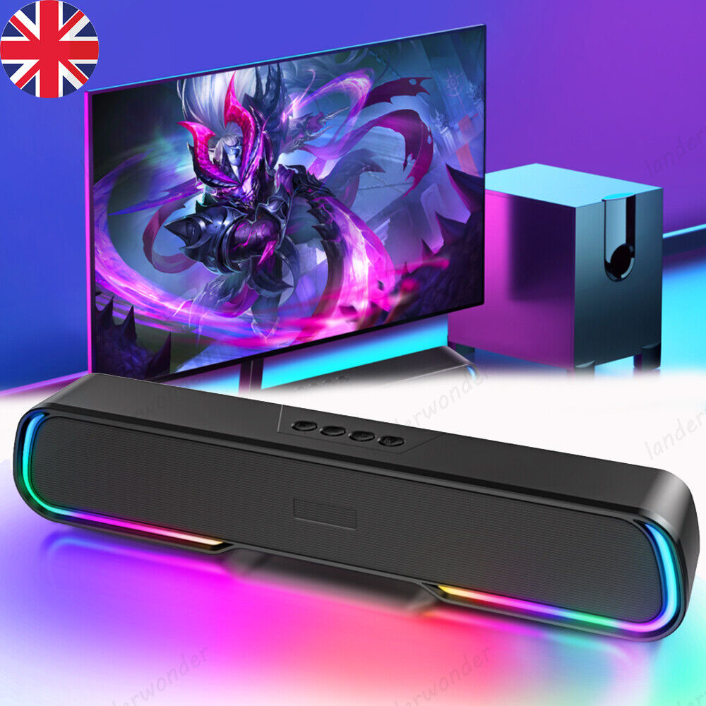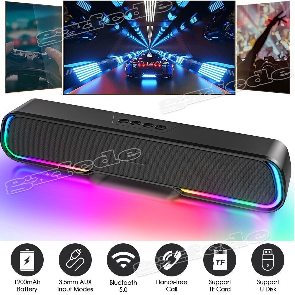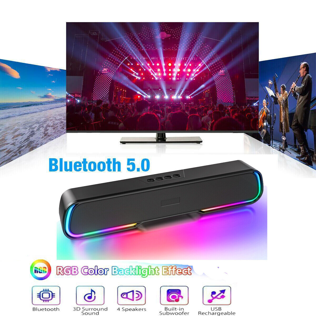 Bluetooth 5.0 Speaker RGB Lights Stereo Sound Bar USB Computer For Desktop PC