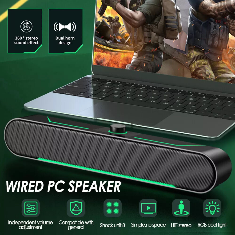 Wired Gaming Computer Speaker USB Power Stereo Sound Bar for PC Desktop Laptop