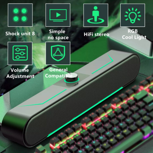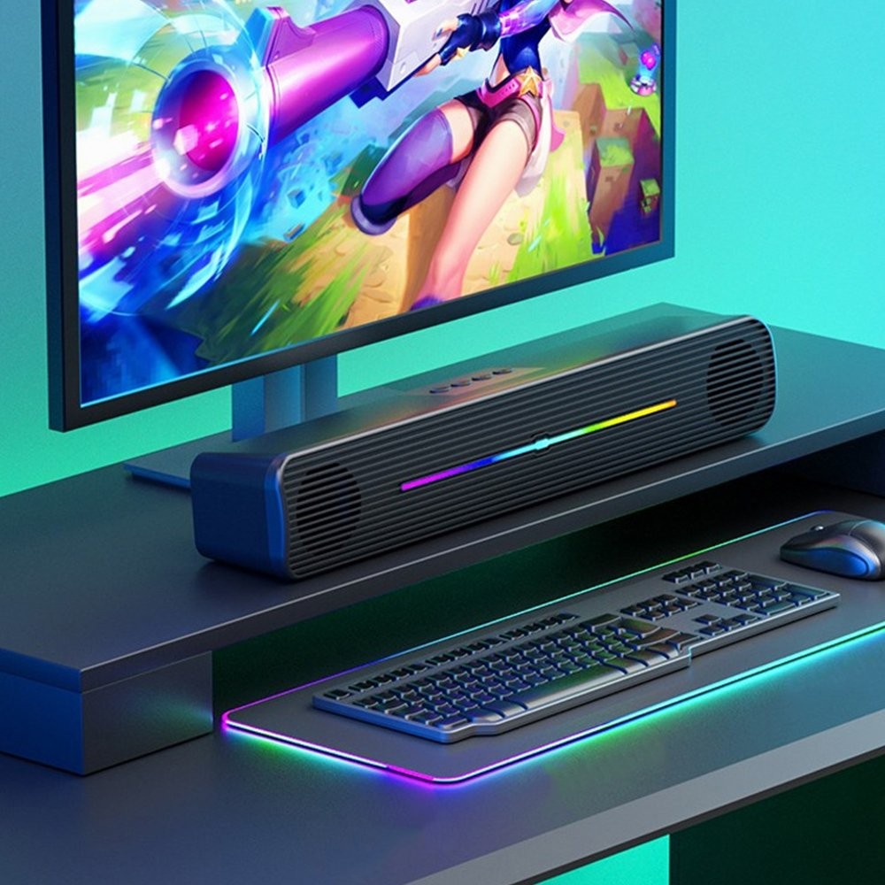 HiFi Stereo Gaming Soundbar Computer PC Speaker RGB LED Sound Bar with 3.5mm Aux