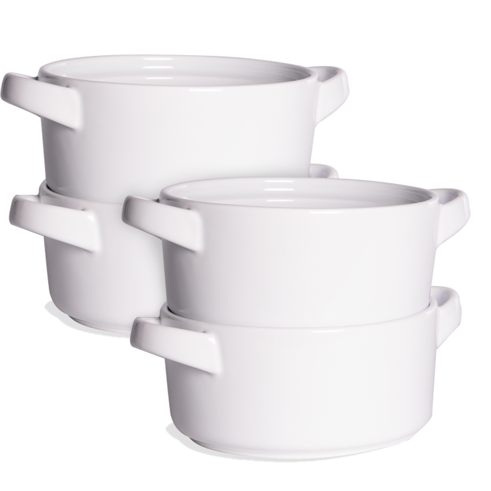 Soup Bowls with Handles - Set of 4 Cereal, Pasta & Stew Bowl Serving Bowls | M&W