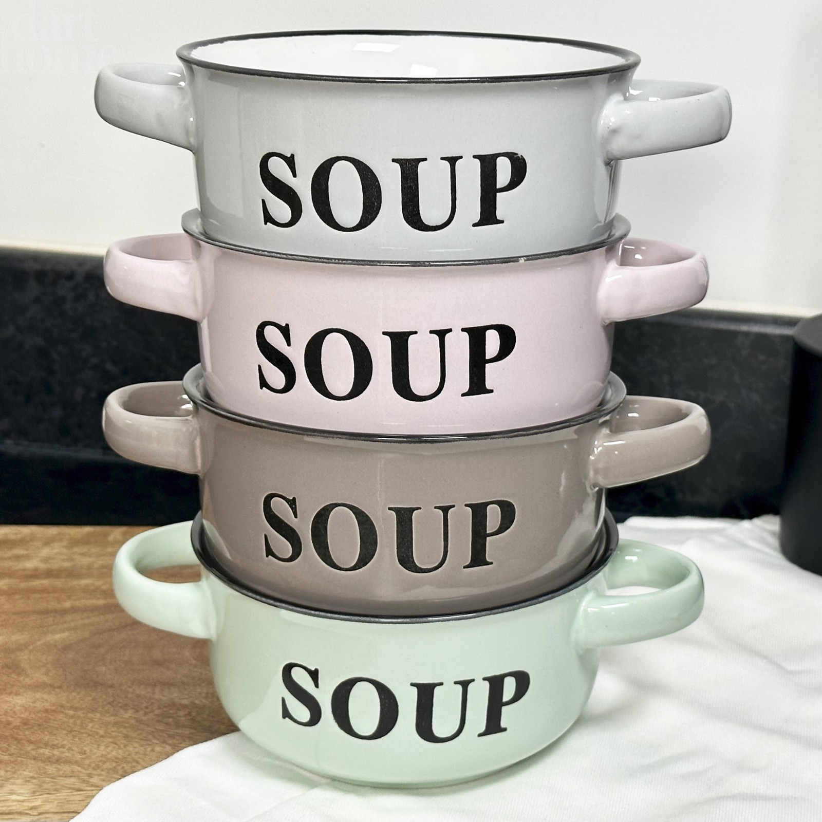 Set Of 4 Pastel Soup Bowls With Handles 500ml Assorted Colours Kitchen Tableware
