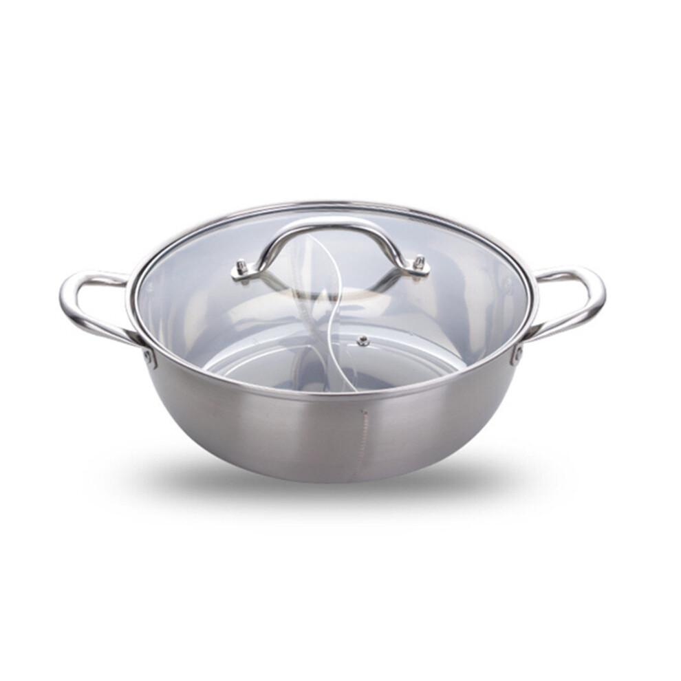 Stainless Steel Twin Divided Double Hotpot Cooker Gas Stove Compatible Pot Home Kitchen Cookware Soup Cooking Pot,32cm