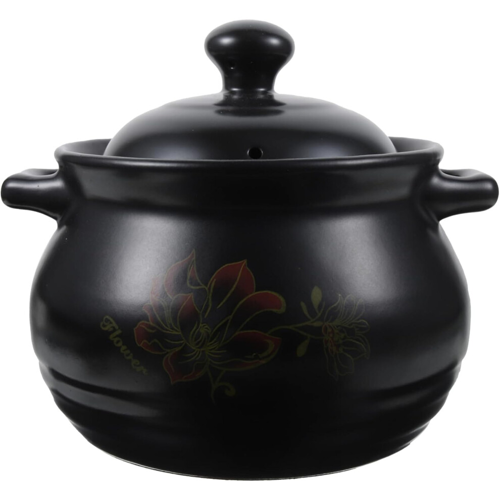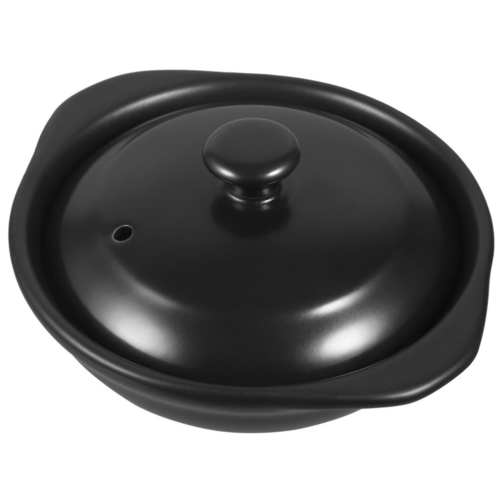 1 Pc Ceramic Casseroles Pot Black Earthenware Soup Pot Pottery Cookware Lids Stew Pot