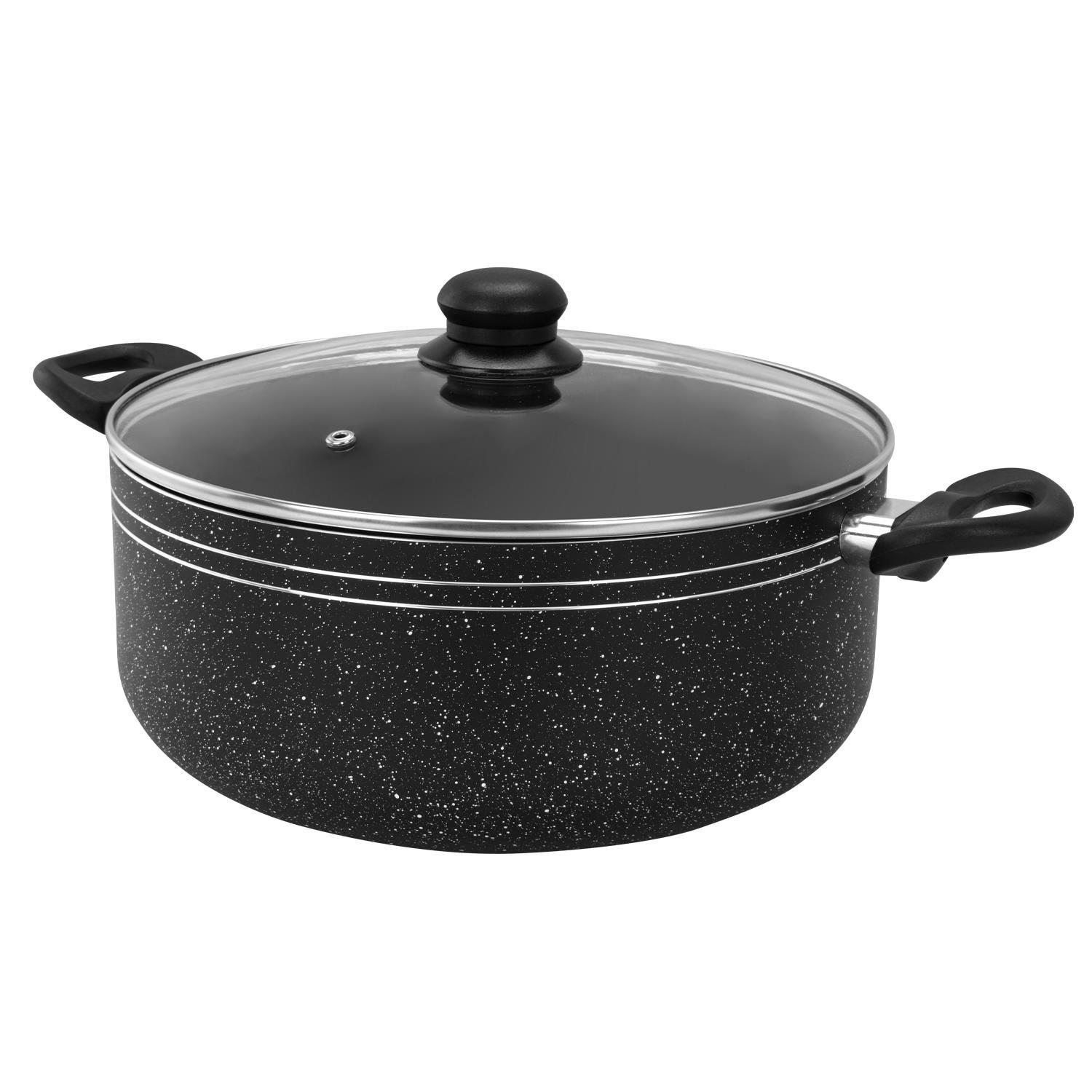 Russell Hobbs RH03410EU7 Nightfall Stone 28cm Stockpot - Non-Stick Saucepan, Tempered Glass Lid, Induction Safe, Durable Aluminum Cookware, Soup Pan,