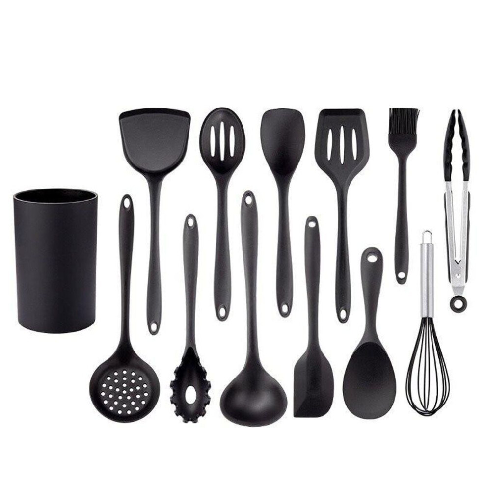 (black) Black Silicone Kitchenware Non-stick Cooking Tool Spatula Ladle Egg Beaters Shovel Spoon Soup Cookware Utensil Kitchen Cookware