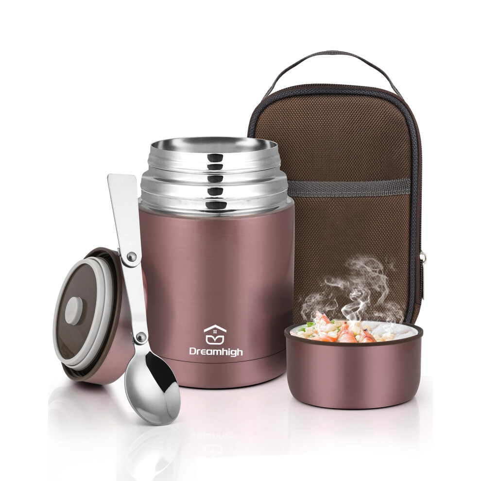 Dreamhigh Thermal Food Flask, 800ml, Soup Flask with Spoon, Stainless Steel Vacuum Insulated Food Container,